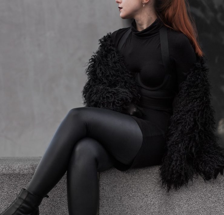 Until I can fully curate my wardrobe into the lingerie goth collection of my dreams, I’ve been experimenting with what I already own. After collaborating with Sasha Louise last year, she gifted me this bodysuit as part payment and it has sat in a drawer ever since. So I whipped it out recently, determined to make it work for outerwear. Combined with the opaque jersey roll neck and Creepyyeha belt, I love how the outfit gives a subtle nod to fetish wear while still being appropriate for the dreary Scottish weather.